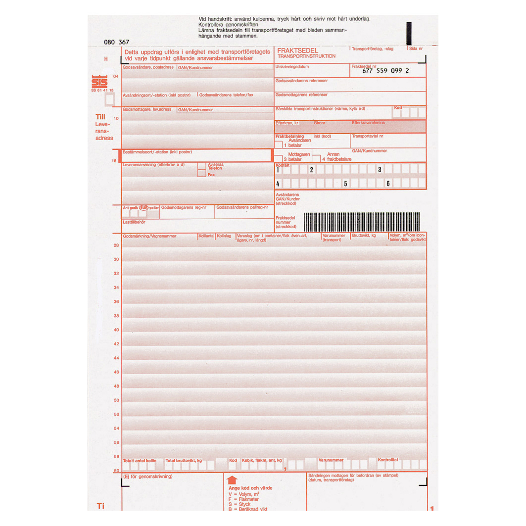 Fraktsedel i set numrerade 500/fp