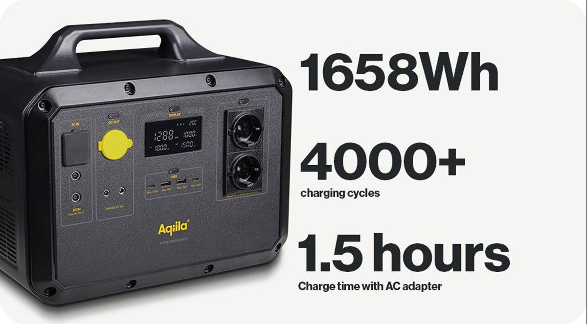 Aqiila Powerbird S1500 är en kapabel och kraftfull powerstation som låter dig ladda dina saker var du än är. Precis som en powerbank kan den ladda dina prylar och låta dig använda dina apparater när du är på språng. Perfekt som strömkälla i husvagnen, i skjulet eller om du behöver arbeta ute på fältet. Detta är en användbar och bekväm powerstation med integrerade säkerhetsfunktioner och solcellsladdning. Det kraftfulla batteriet är väl skyddat med den senaste BMS-tekniken som garanterar säker och stabil användning. Med den senaste generationens LFP-batteri är det möjligt att ladda och tömma Powerbird över 4000 gånger. Det är nästan 11 års daglig användning. Powerbird är säker, hållbar och effektiv. Powerbirds powerstationer är utrustade med den senaste MPPT-tekniken, som gör det enklare och mer effektivt att ladda Powerbird med solpaneler än någonsin tidigare. Du kan ansluta två solpaneler till Powerbird S1500 för maximal effektivitet.