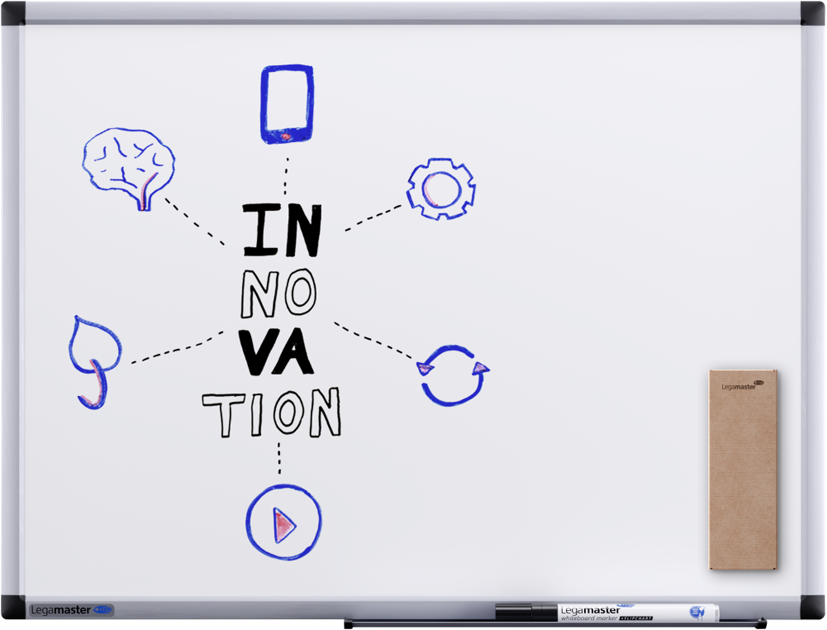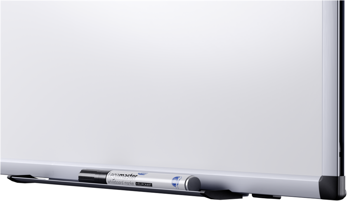 Inklusive en svart Legamaster whiteboardpenna TZ 1 och taveltorkare av kartong.
