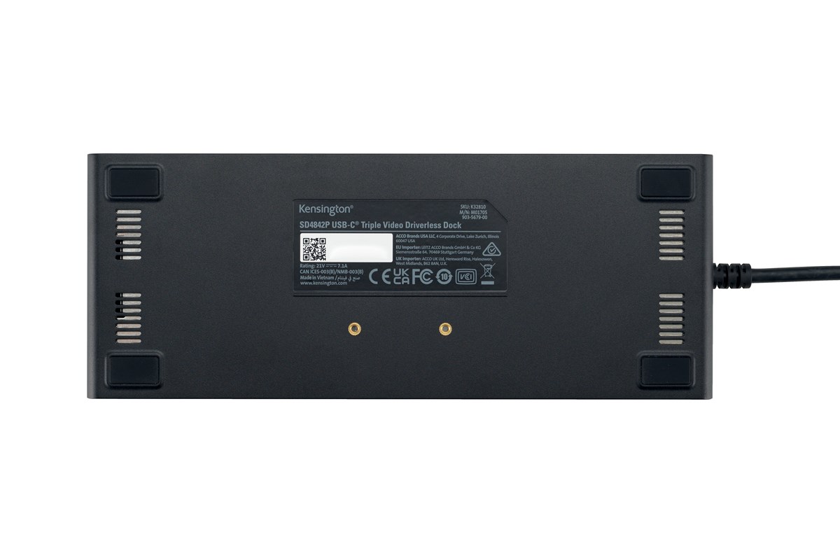 SD4842P har stöd för upp till 3 externa Full HD-bildskärmar (1080p vid 120 Hz) via e1 x DP och 2 x HDMI-anslutningar. Dockningsstationen avlägsnar även behovet av klumpiga adaptrar och laddar anslutna tillbehör utan att behöva förlita sig på en anslutning till en bärbar värddator. Utöka enkelt antalet bildskärmar med en dockningsstation som förbättrar arbetsflödet.