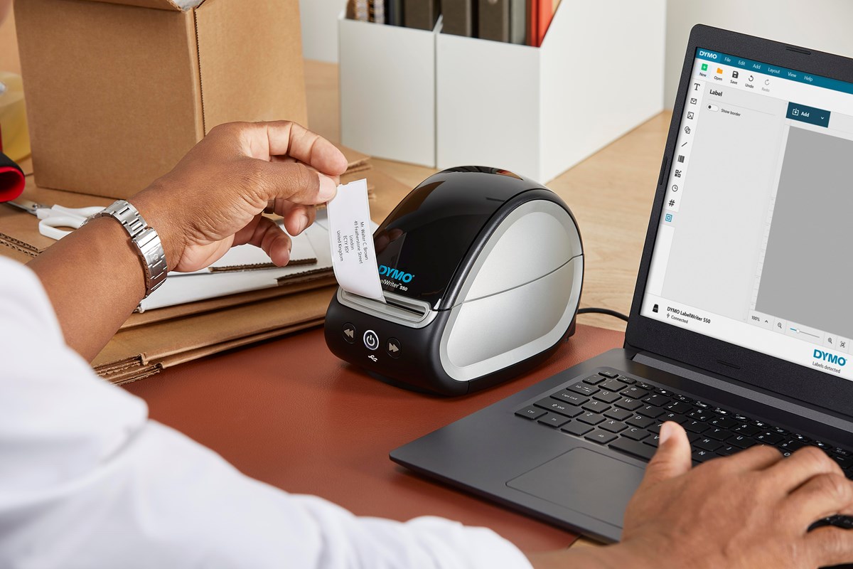LabelWriter 550-skrivaren är en effektiv och kostnadseffektiv lösning för dina professionella utskick, arkivering, besökshantering och andra märkningsbehov. Unik etikettigenkänningsteknik innebär att du inte längre gissar på rätt etikettyp från en rullgardinsmeny. Du vet alltid - i en vy - vilken storlek, typ och färg etiketten som är laddad har. Du kommer också att veta hur många etiketter som finns kvar så att utskriften aldrig mer avbryts i mitten.