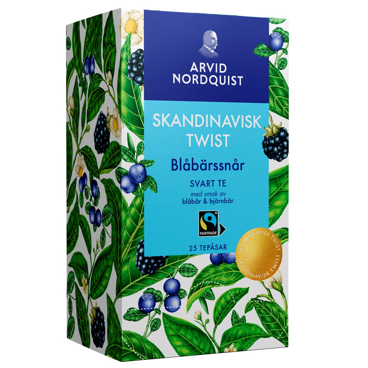 Klassiska smaker möter skandinavisk natur. Du behöver inte resa till världens ände för att vara med om ett smakäventyr. Varje bäck, fjälltopp och glänta i vår natur myllrar av spännande smaker. Det har vi inspirerats av i vårt Fairtrade tesortiment – där klassiska teer fått en skandinavisk twist. Njut av Blåbärssnår – ett fylligt svart te med rik smak av blåbär och björnbär.