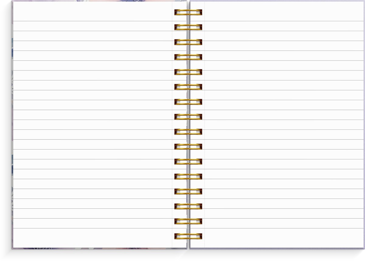 Format: A5. Layout: Linjerad. Omslag: Kartong. Spiralbunden. Antal sidor: 300. Pappersvikt: 70 g. Miljöinformation: FSC®.