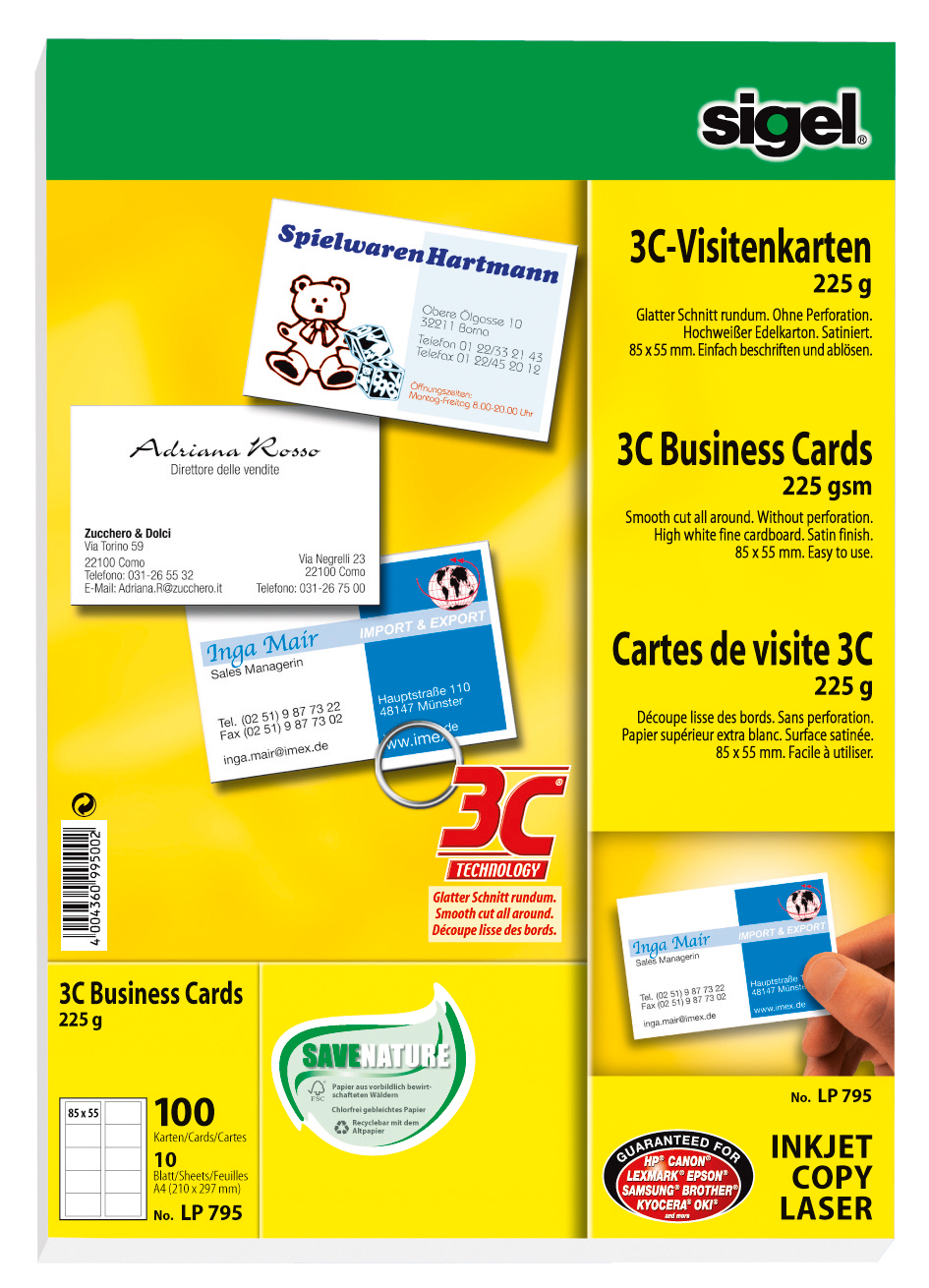Visitkort Sigel 3C 225 g 100/fp